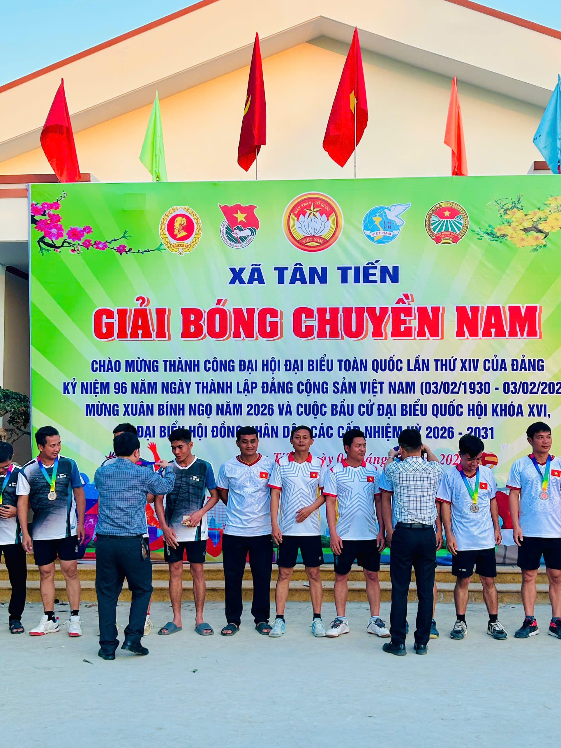 Hòa chung trong không khí vui mừng phấn khởi cùng với cả nước ra sức thi đua lập thành tích chào mừng thành công Đại hội đại biểu lần thứ XIV của Đảng; kỷ niệm 96 năm ngày thành lập Đảng Cộng sản Việt Nam (03/02/1930 – 03/02/2026), mừng Xuân Bính Ngọ 2026 và cuộc Bầu cử Đại biểu Quốc hội khóa XVI và đại biểu HĐND các cấp nhiệm kỳ 2026-2031. Sáng ngày 04/02/2026 UBMTTQ Việt Nam xã và các tổ chức chính trị xã hội xã Tân Tiến tổ chức khai mạc giải bóng chuyền nam năm 2026.